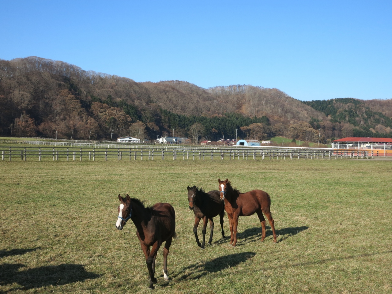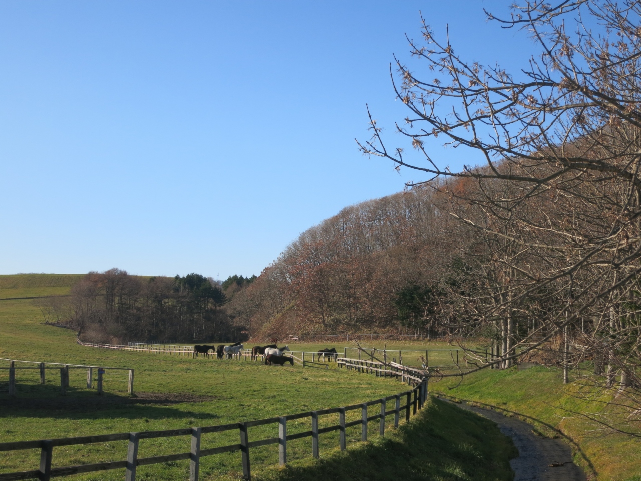 浦河国道235号線から分岐した道道209号線は一路、日高の山並みの方へと伸びていきます。途中、道の両側には馬牧場ののどかな風景が広がります。