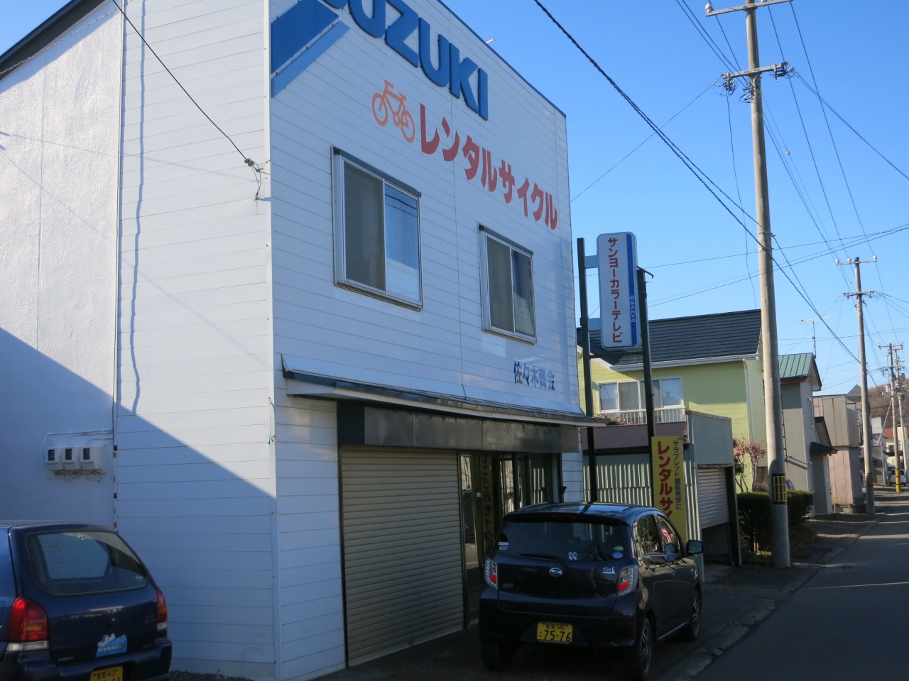 新冠唯一のレンタサイクルショップとのことです。新冠の駅から100mもない、駅の南側、細い通り1本のところにある家族経営の自転車屋さんです。通常の自転車(ママチャリ)が数台ありました。ほかに50ccバイクも貸し出しているとのことです。自転車は1日¥1,500円。