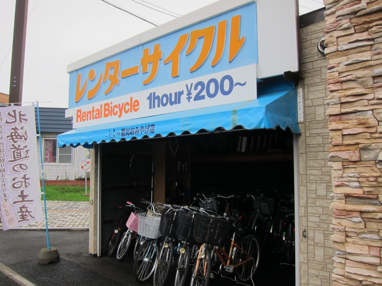 富良野駅を出てすぐの所にあるお土産屋兼レンタサイクルショップです。駅を出て左側すぐなので、自転車を借りるのに便利です。1時間200円(電動は500円)。1日最大1000円(電動は不明)です。富良野駅からの路線バスは本数が少ないので、天気が良く、近くを回るのであれば、レンタサイクルは使い勝手がよいです。