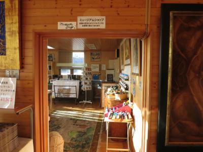 美術館は日高やその周辺部の施設で案内パンフレットが置かれている。その裏面に割引券がついていて、受付で提示すると入場料から200円を引いてくれる。また、美術館なのでミュージアムショップもあり、作品のポストカード(\80/1枚。\200/3枚。)などがあった。- 旅行時期