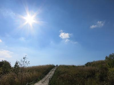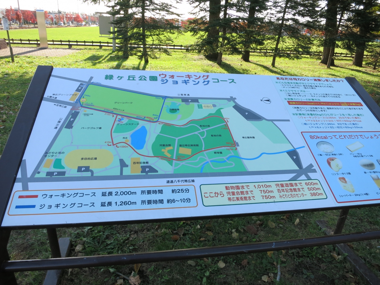 帯広駅側の入り口すぐの広場、グリーンパークの端に400mベンチがあります。1987年に石川県の富来町の460mベンチに抜かされるまで世界一長いベンチとされていました。木製で小さく背もたれがない部分もあり、抜かされたせいなのか貧弱な感じはしますが、休憩にはよいです。その他、入り口のところには無料の駐車場や公園の案内板などがあります。案内板には公園内の散策コースの距離も記されているので目安にするとよいと思います。また、駐車場は百年記念館のところや動物園の入り口など、公園の北西側をなぞる国道216号線沿いにもあります。- 旅行時期