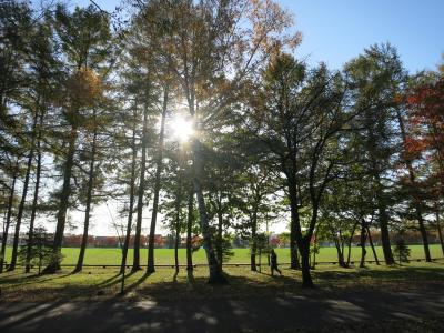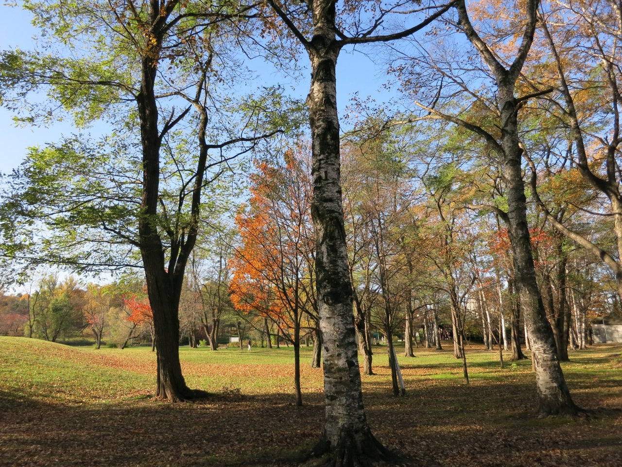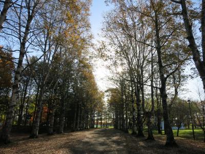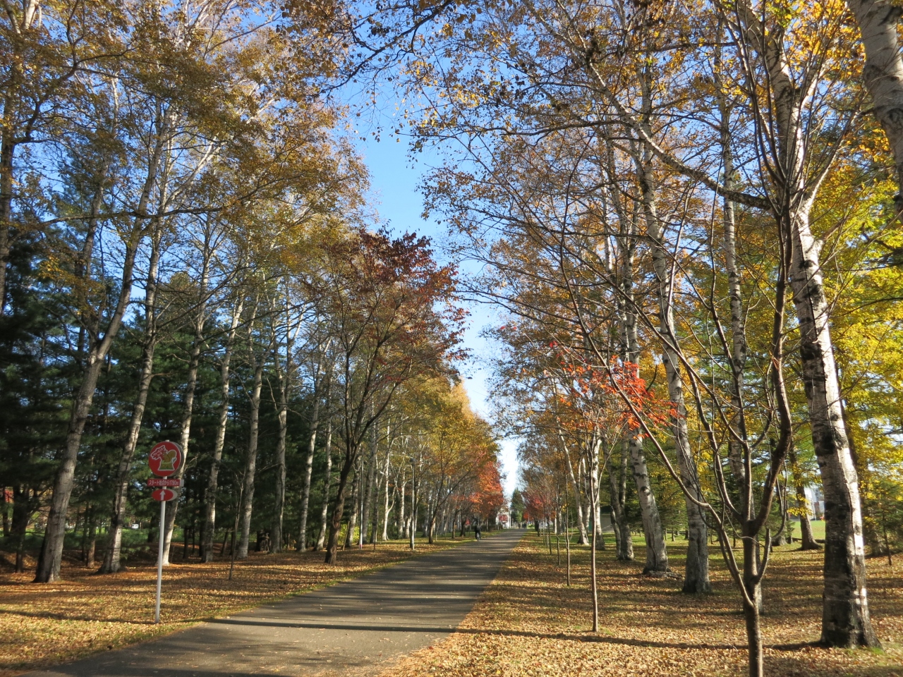 秋の紅葉のころに行きましたが、朝のすがすがしく鮮烈な光の中、黄色い落ち葉舞う並木道の散策はとても気持ち良かったです。2013年は10月の下旬ころが紅葉のピークでした(札幌で10月末。支笏湖で10月下旬。青い池などの富良野山間部、然別湖や糠平温泉、阿寒湖で10月中旬。という感じ(2013年))