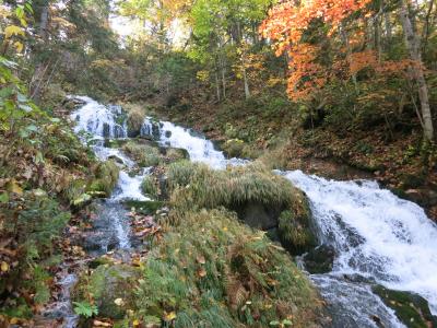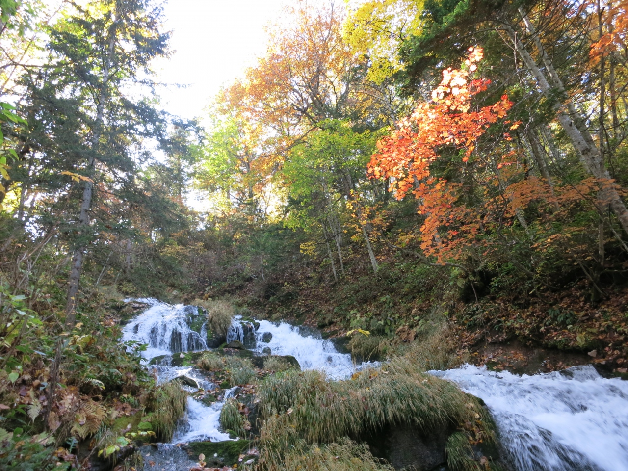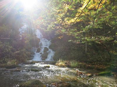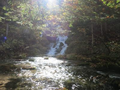 休日だったので、あいも変わらず青い池の方は朝から人と車でいっぱいでしたが、不動の滝の方は数人が立ち寄る程度。行者の方々が数人で法要をしていたこともあり、さびしい感じはありませんでした。むしろ、朝日の差し込む森の中を滝と清流が流れ、紅葉の中、マイナスイオンを含んだ風が清清しく、凛とした清流の冷たい水に手をつけていると日常のストレスが洗い流されていくようでした。- 旅行時期