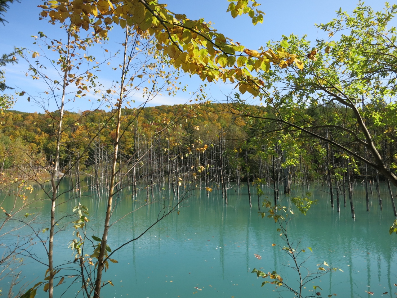 ただ、地元の人に言わせるとそれでも青くないそうです。昔はもっと青かった。そして木は枯れていなかったそうです。観光というほどのものでもなく、白金温泉の宿泊客が周囲に見るものが少なかったので、ひまつぶしに池を案内したそうです。なお、それでも雪解け水が流れ込む頃は今でも青いという地元の人のおすすめでした。十分に青いように感じられた池でしたが、雪解けのころもいいのかもしれません。