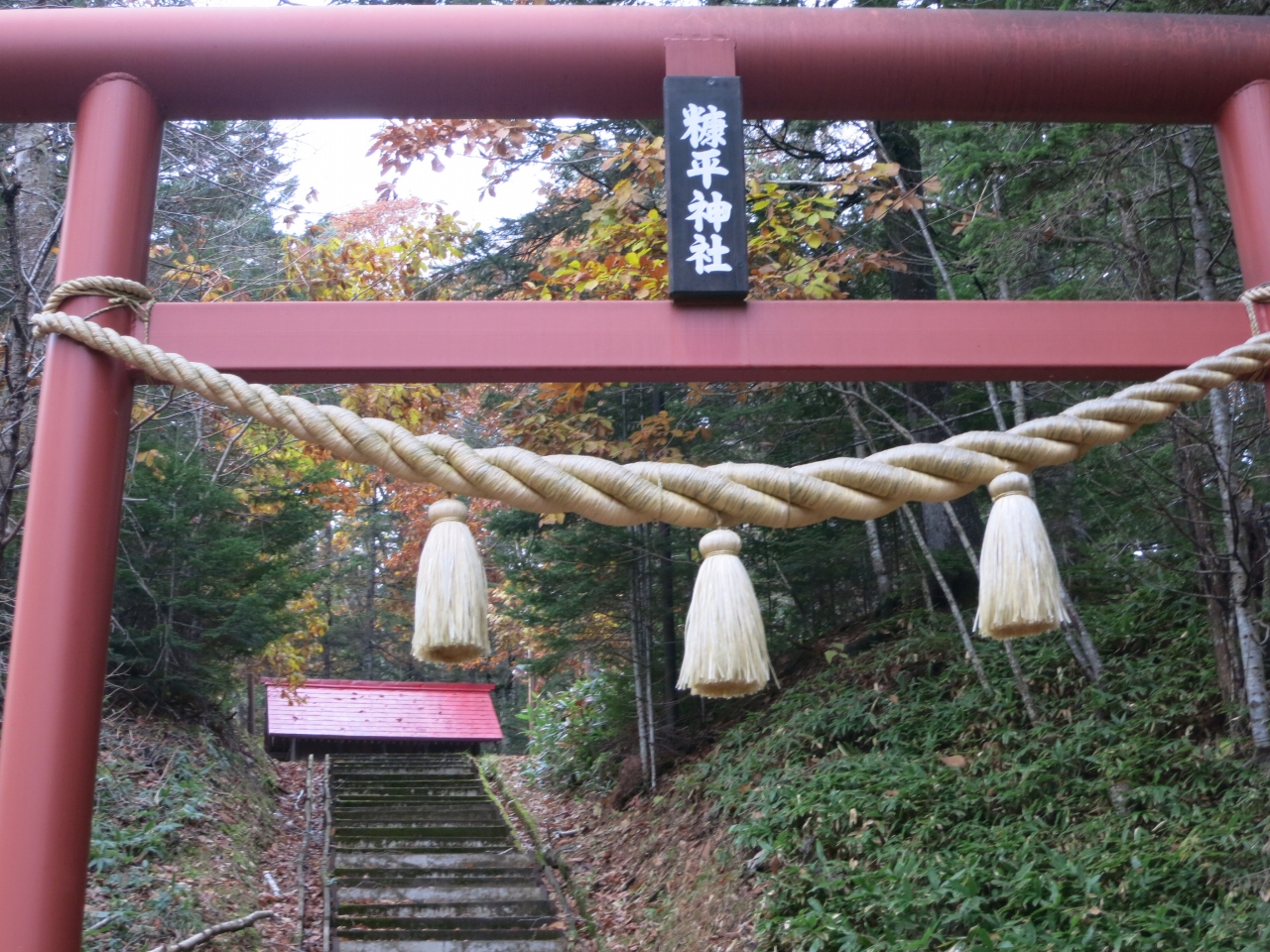 糠平源泉郷の外れ、糠平湖へのパールスカイラインとの分岐を過ぎた、糠平小学校の手前あたりにあります。糠平国道の273号線沿いですが、森の中にお社がぽつんと。紅葉の頃に行きましたが、落ち葉の降り積もる石段を少し登りました。鳥居のしめ縄など、手入れされ、源泉郷の鎮守であるのが分かります。人は全くいませんが、国道とそれほど離れておらず、時々通る車の音に寂しさはそれほど感じません。源泉郷のごく近辺にはひがし大雪自然館や鉄道資料館、糠平川橋梁といった見所がありますが、糠平神社の場合は、森の中の散歩道と併せて温泉の湯上りにでも寄る程度だと思います。