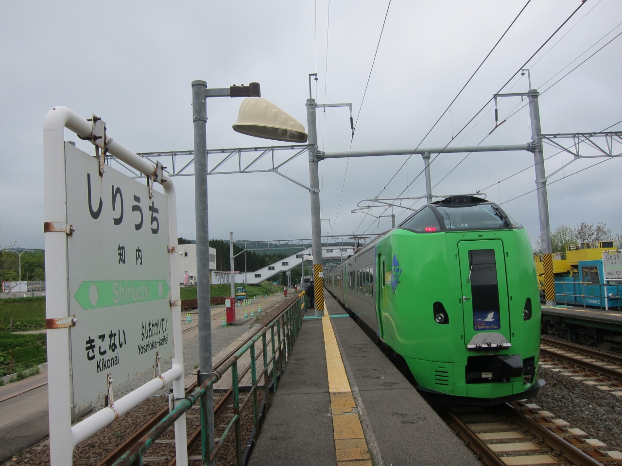 朝と夕の2往復の函館~青森の特急が停車します。特急しか停まりませんが、津軽海峡線は、木古内~蟹田の中で完結する乗降なら普通乗車券のみで特急券は要りません。知内駅は同区間内にあるので、蟹田、木古内までは普通運賃で行けます。そこから先は特急に乗れない、または特急料金が必要です。