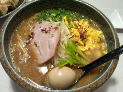 とろとろこってりのスープに太めの麺の入った元気のでるみそラーメンを置いています。行者ニンニクが入っているそうです。ニオイがしないを謳っていました。ただ、熱さと辛さでよく分からなかったですが、その分、美味しかったです。辛さは中のもやしと卵がいい感じでバランスをとってくれました。さらにギョーザを付けたので元気倍増です。入り口のブタの置物、いっちゃんの頭をなでても元気倍増のハッピー倍増とか。なお、条件がありますが、卵(とろり半熟たまご)は一粒庵のホームページから印刷されるクーポンを持参すると付けてくれます。また、ギョーザは普通のとしそ味を選ぶことができます。