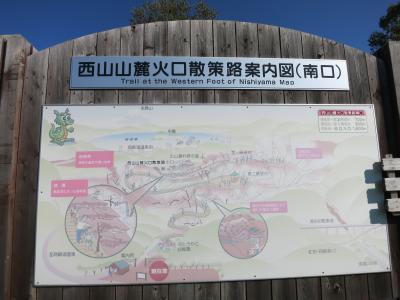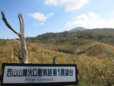 洞爺湖の温泉街から1~2kmほどの場所、JR洞爺駅からは3~4kmあります。どちらからもバスが1時間に1本ほど出ていて、西山火口遊歩道入口で下車です。遊歩道の北口に着きます。