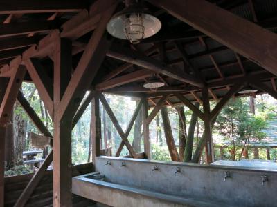 キャンプ場には炊事場やトイレなども整備されています。ただ、森の中でちょっと薄暗い感じです。近くには谷戸の池もあります(緑色に濁っていました)。秋に行ったので分かりませんでしたが、夏などは蚊がいっぱいなのではないかと思います。キャンプ場を利用するのであれば、虫除けスプレーを持っていった方がよいと思います。