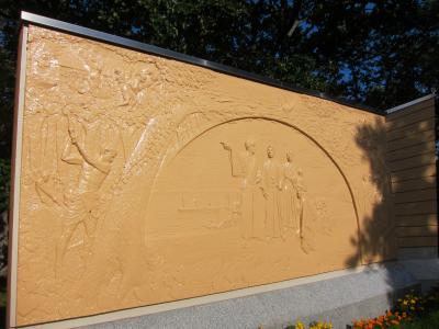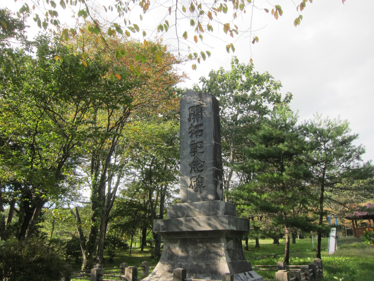 静内の中心部から道道71号線で3~4kmほど東へ行った御殿山公園内にあるレリーフです。明治期に静内の地を開拓した稲田氏とその一団の様子が描かれています。ただ、レリーフを見ただけでは、同時期に北海道内で同じように苦労して開拓した他の入植者と同じになってしまいます。街の中心部、古川公園内に静内郷土資料館があり、そこで入植の顛末などが解説されているので、そこに寄ってから行くのがおすすめです。