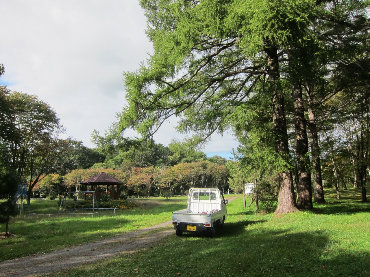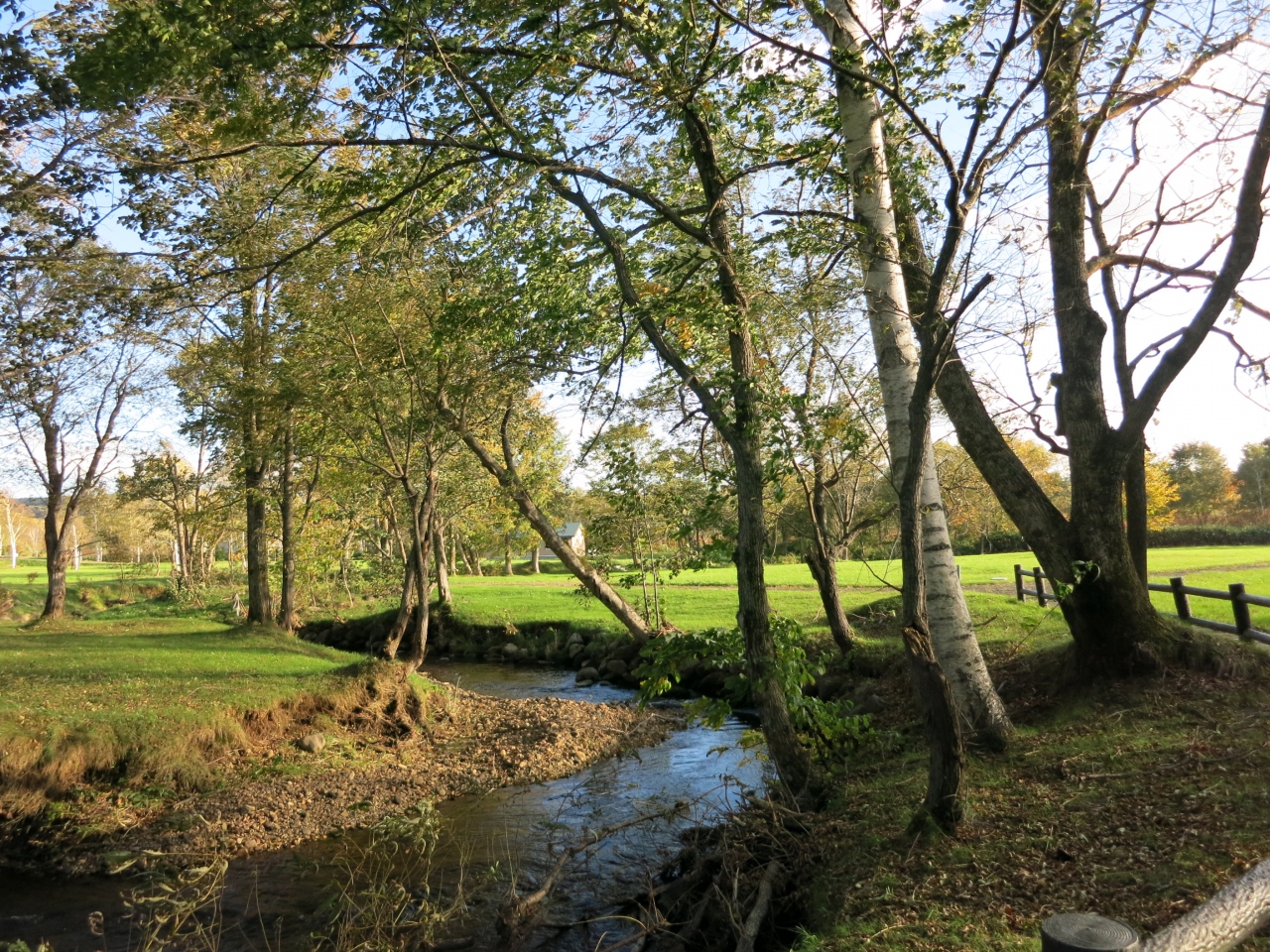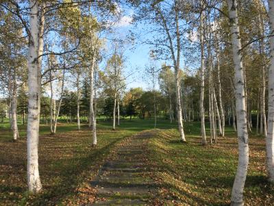 母子里地区は、近くにあった旧深名線北母子里駅舎もなくなっていて、十字路にあった商店も最近閉店してしまい、過疎化が加速しています。窓口に母子里の観光地図が置いてありましたが、既に無い建物も載っていました。ここでは何も無いのを楽しむといいかもしれません。秋の日の光を受けた白樺林と草地の中、ただ公園内を散策しているだけなのに何故か心が癒されていく感じがしました。