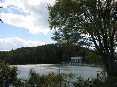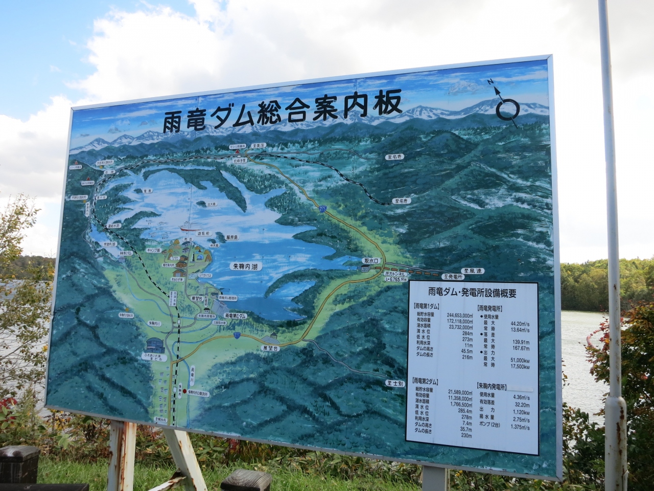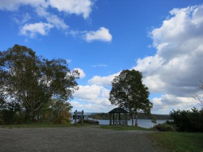 朱鞠内湖畔、雨竜第一ダム近くにある展望台です。朱鞠内湖を見渡す展望台は、国道275号線沿いにもありましたが、こちらの方が間近で見ることができます。ただ、行った時はちょうど改修中で、広場とあずま屋があるのみでした。しかしそれでも十分展望は利きました。