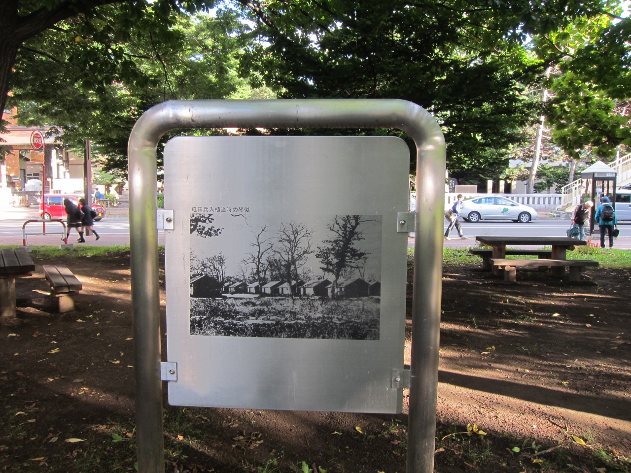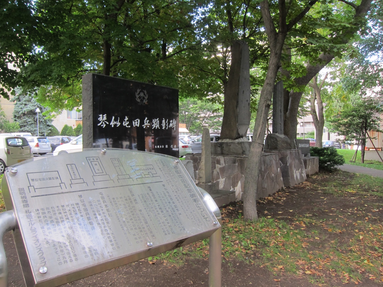 このあたり一帯は明治7年(1874年)より開拓にあたった屯田兵の入植地で、さらにこの場所は連隊中隊本部などがあった場所とのことです。石碑だけでは分かりにくいので、森の隣にある琴似屯田歴史館資料室(月・水・金の10:00-16:00)に行くとよいと思います。琴似二十四軒まちづくりセンターも入っている建物です。- 旅行時期