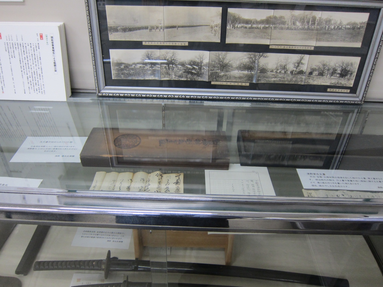明治7年(1874年)に屯田兵が琴似に入植してからの品々が展示されています。もともとは琴似栄町通を挟んだ向かいの琴似神社の境内にありましたが、太平洋戦争直後の混乱期に、ホームレスの火の不始末から全焼してしまったそうです。当時の建物の最頂部にあった星飾りが展示されていました。ということは、現在ある展示品はその後に集められたものかもしれません。農機具や書簡などの資料が展示されています。