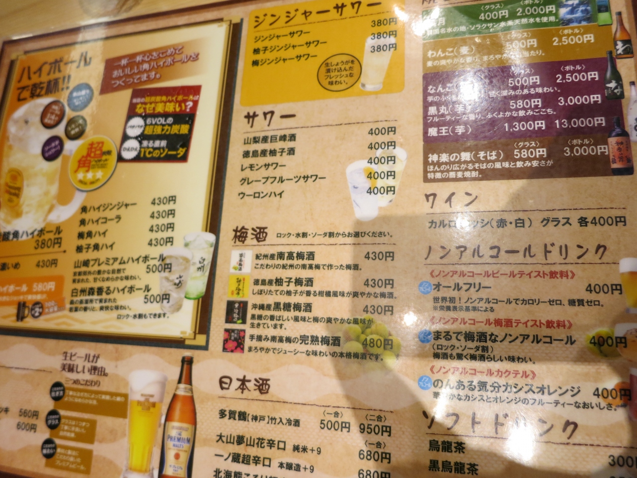 2012年より居酒屋として、お酒も扱うようになったそうです。改装して「そばとお酒 八雲」となっています。梅酒の種類が4種類ほどあり、他の居酒屋よりも少し多めなのかなと思いました。その他に「まるで梅酒なノンアルコール」というのもあり、ロック・ソーダ割りで注文できます。