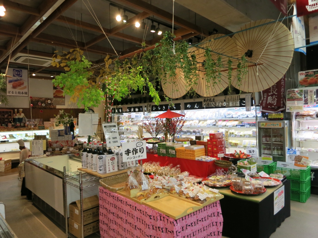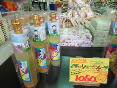 特産品ではこの地方一帯でとれる、あじやあご(とびうお)、鯨の加工品があったほか、松浦オリジナルとしてパッションフルーツのリキュールやジャムなども販売されていました。