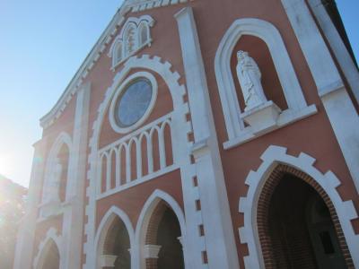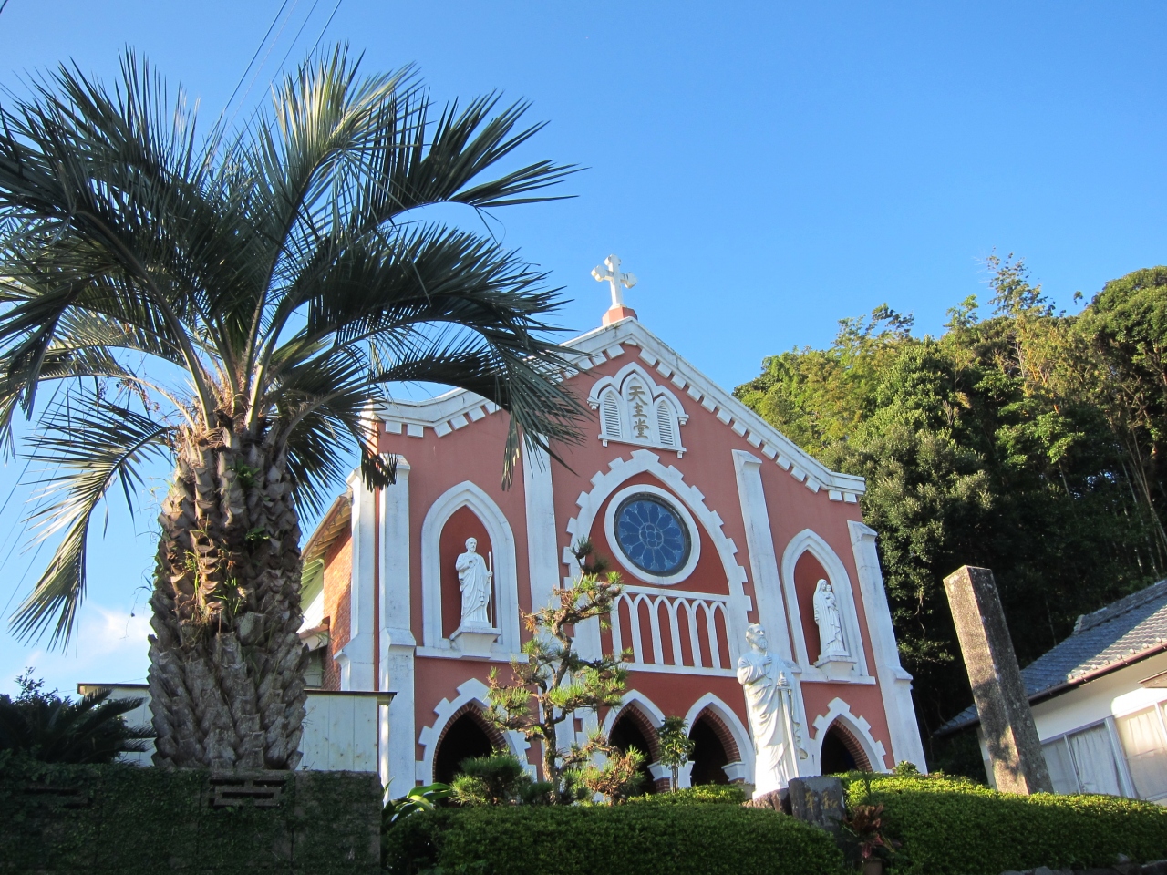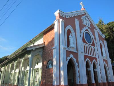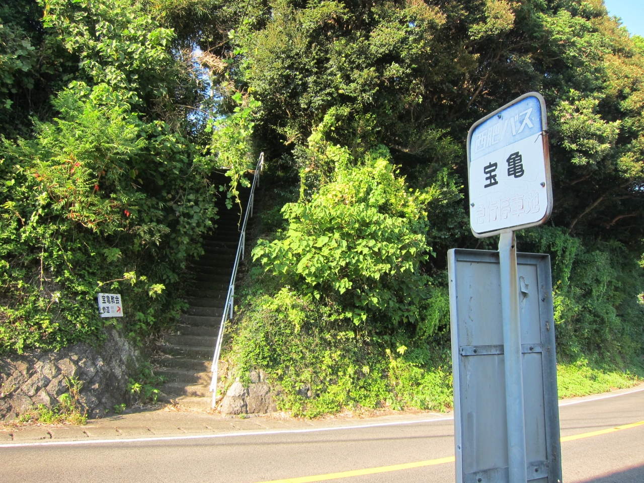 教会は平戸の中心部から10kmほど離れた宝亀地区にあります。鄙びた場所です。国道383号線にある宝亀バス停のすぐ横の細い小道を行くこと、8分とあります。多少傾斜のある道を登ります。なお、教会の前まで車で行くこともできます。高台にあるため、海と入り組んだ海岸線の眺望が教会からも少し楽しめます。- 旅行時期