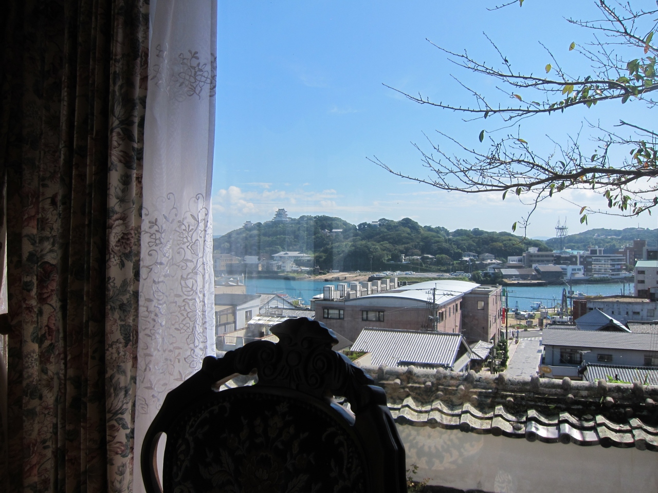松浦史料博物館の敷地内にあるカフェ兼お土産屋です。カフェは、アンティークな洋風の雰囲気に一面ガラス張りの窓からは平戸城や平戸の街並みの眺望が美しく、休憩にぴったり。ここに来て立ち寄らないのは勿体無いです。博物館のチケットには茶室での呈茶の割引券が付いていましたが、眺望亭に寄ったほうがいいと思います。
