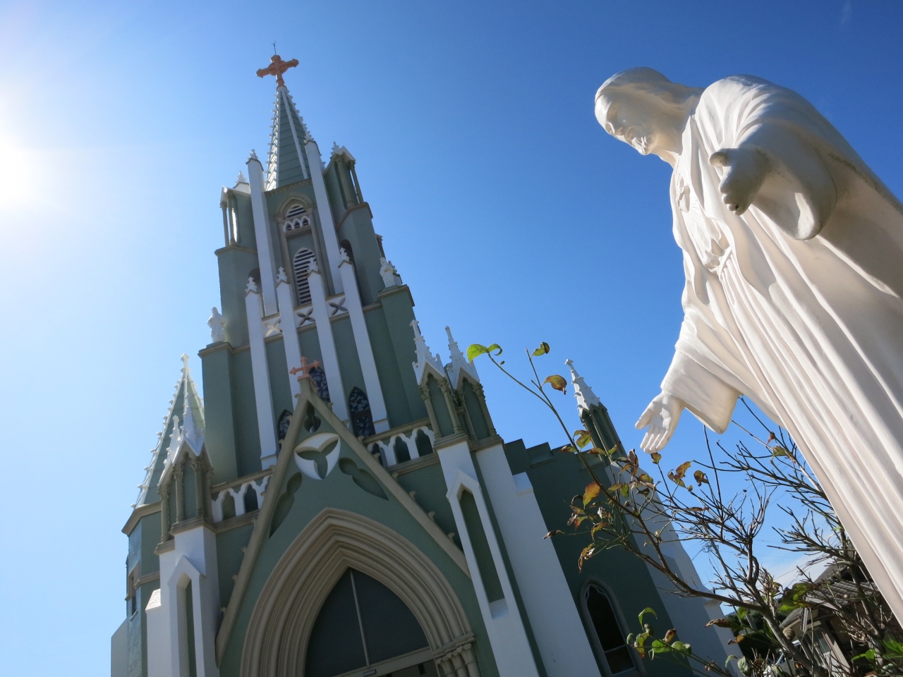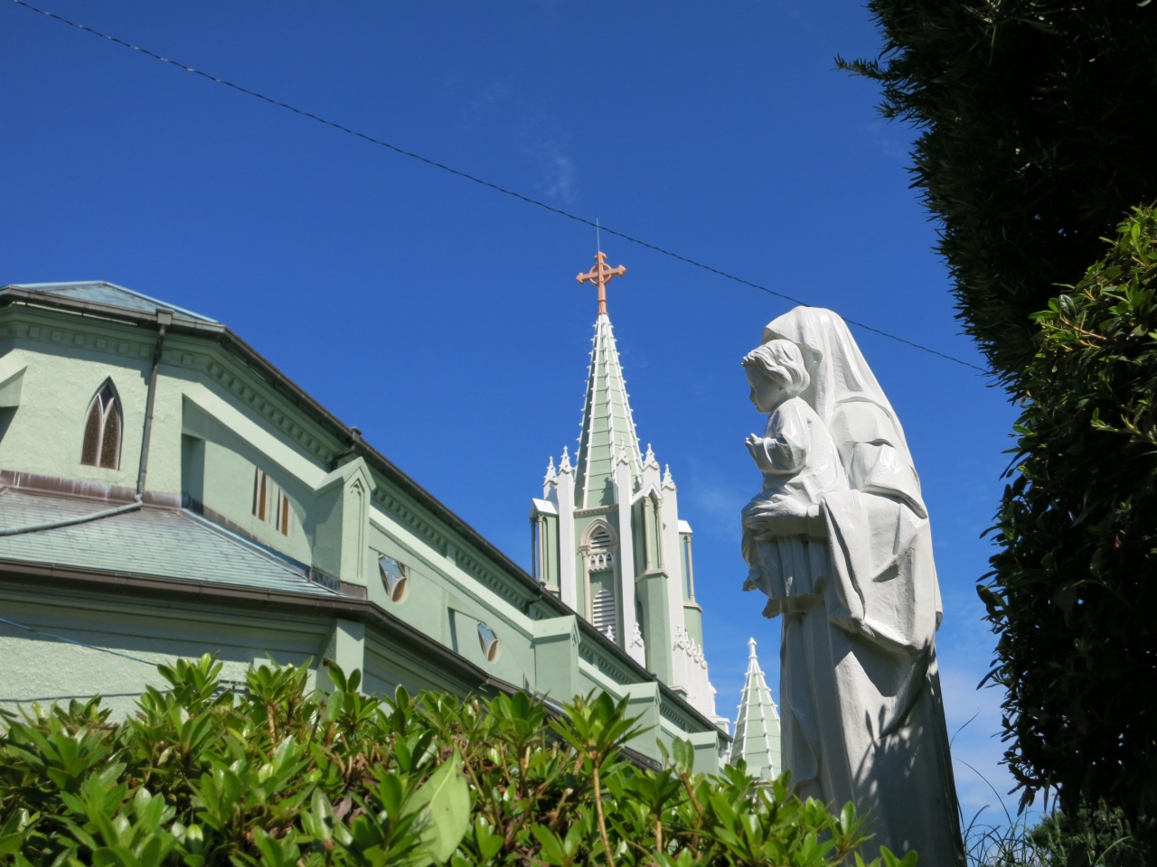 教会に来たならば、余裕があれば裏手の光明寺、瑞雲禅寺なども回るとよいと思います。教会坂からも入れますが、教会の裏手の方から正宗寺の方へ回り、寺院と教会の見える道(坂)を下って行くと雰囲気のある門から入ることができます。- 旅行時期