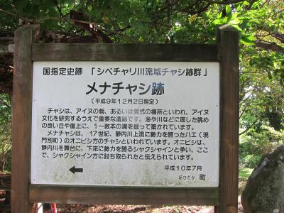 ところが、静内川流域の狩猟の権益を巡って争いが起き、メナシュンクルの有力者、オニビシがここ、御殿山のチャシで殺害されたそうです。これがメナシュンクルの松前藩への支援要請、要請却下とその使者の死亡、和人への不信、そしてシャクシャインの乱へとつながっていったとのことです。