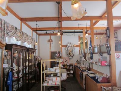 教会の前には売店があり、キリスト教にちなむ人物画のプレートや十字架などのペンダント、アクセサリー、置物などがありました。個人的には長崎の各教会のステンドグラスのしおり(\300円)が手ごろで良かったです。