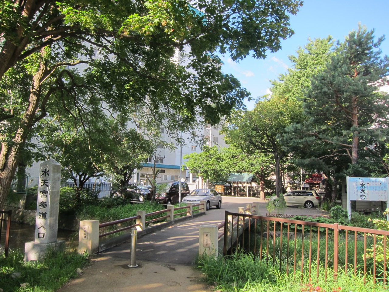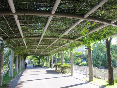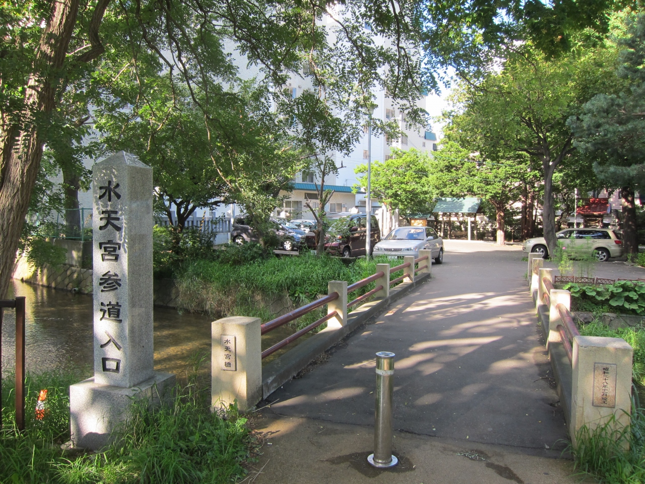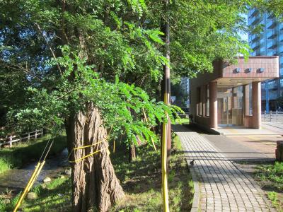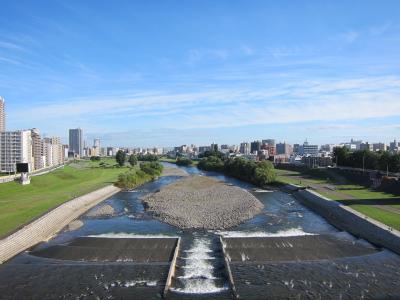 地下鉄南北線、幌平橋駅の出口近くの鴨々川は水遊び場となっています。ひざ下ほどの浅いせせらぎで、川床も砂利が敷かれています。この付近と、南14条橋の北側あたり(水辺の階段)にかけては、水面まで下りて遊べるようになっています。ただ、庭園木が生えていて、水辺の階段の方がさっぱりしていて良いような気がします。アクセスは地下鉄出口すぐなので抜群です。1975年に整備されたそうですが、当時は川面にもいろいろ遊具があったようです。今では徐々に撤去され、オレンジ色の物見台が辛うじて残っています。