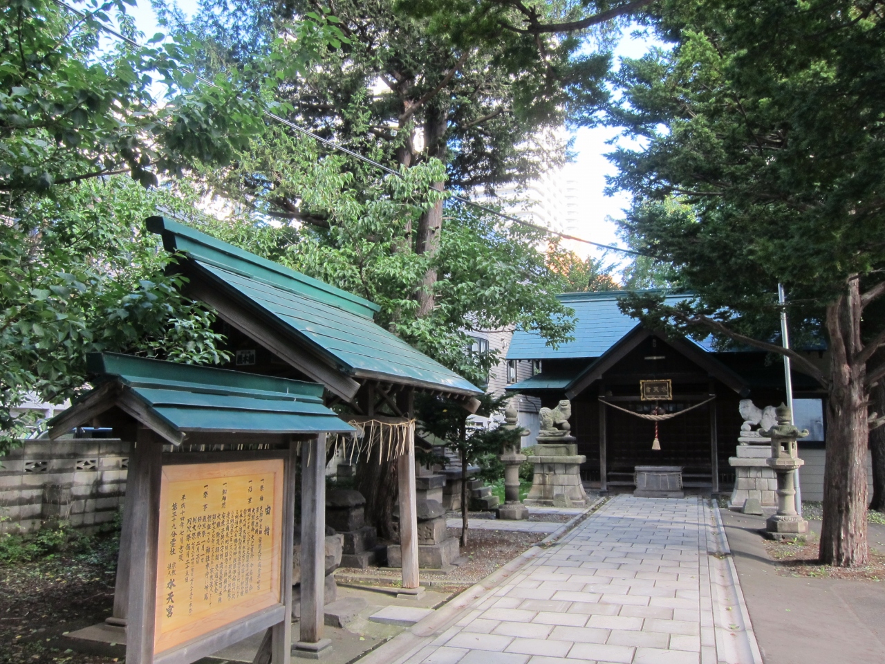 地下鉄東西線、琴似駅から琴似栄町通りを南へ200~300mほど。西区役所の向かいです。付近は屯田兵村があったまさにその場所。町割りなども当時のものをそのまま残していて、琴似神社が面する琴似栄町通りは屯田兵村時代のメインストリート、向かいの区役所あたりは中隊本部だったそうです。琴似神社も屯田兵有志により建立され、後年、現在地に移されたとのことです。