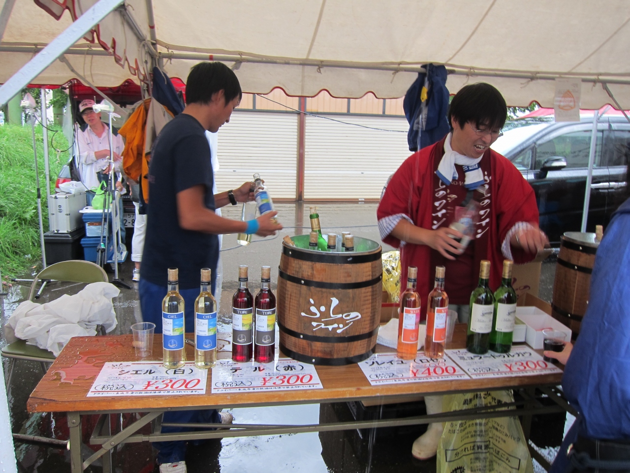 JR富良野駅前広場で開催されるワイン(ぶどう)のお祭りです。しかし、各銘柄とも、プラスチックのカップで1杯ずつ売っていて(1杯¥200円~)、ボトル売りのものは見かけませんでした。近くのフラノマルシェ、またはふらのワイン工場まで行くことになると思います。ほか、ぶどうジュース(1杯\100円)も販売されていました。