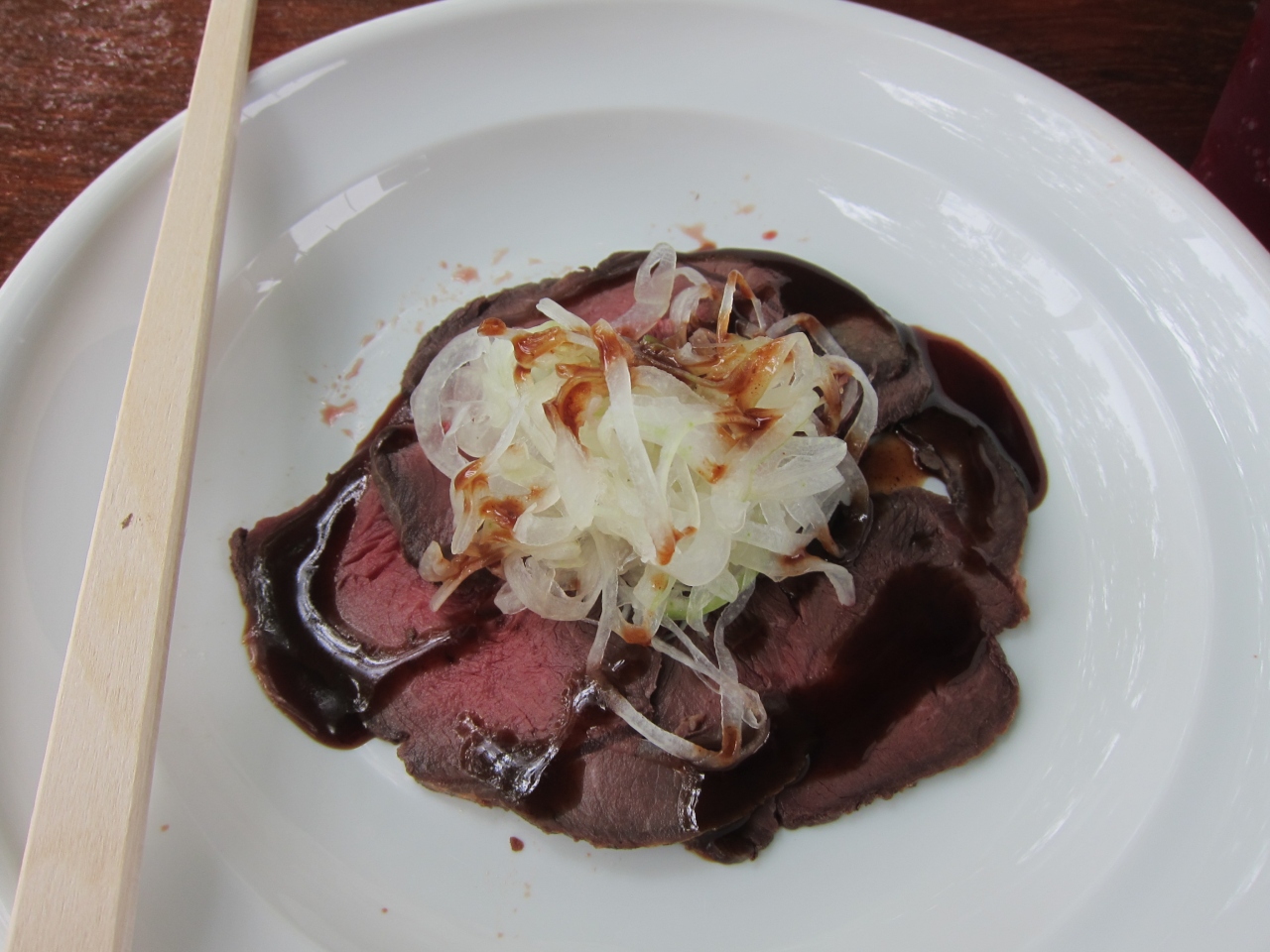また、ワインですが、個人的にはアラカンパーニュさんが出していたサングリア(赤)が美味しかったです。よく漬けこまれたオレンジの風味とベリーの実が香りよく、おいしさを引き立たせていました。