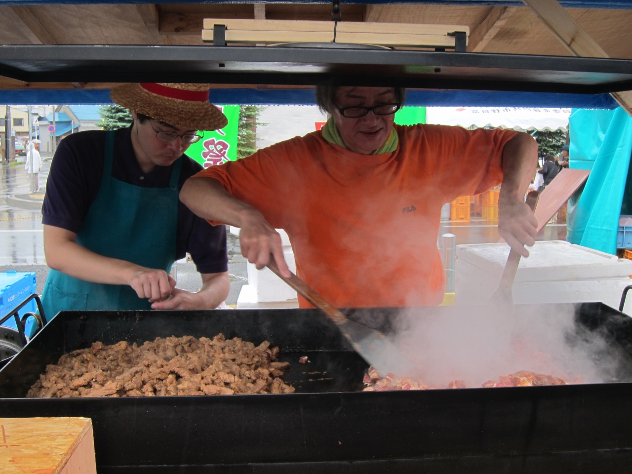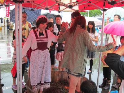 ふらのワインぶどう祭りは、2013年は9月15日に開催されました。その1週間ほど前に小樽ワインカーニバルが開かれましたが、小樽は北海道ワインの工場が会場なだけに、種類豊富なワインをボトルで買うことができました。また、会場も小樽の方が盛大でした。しかしチーズフォンデュは富良野の方に軍配です。