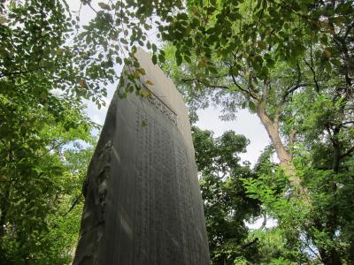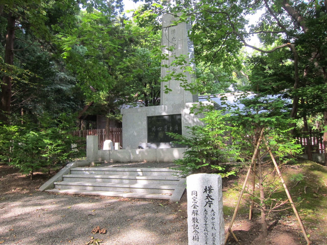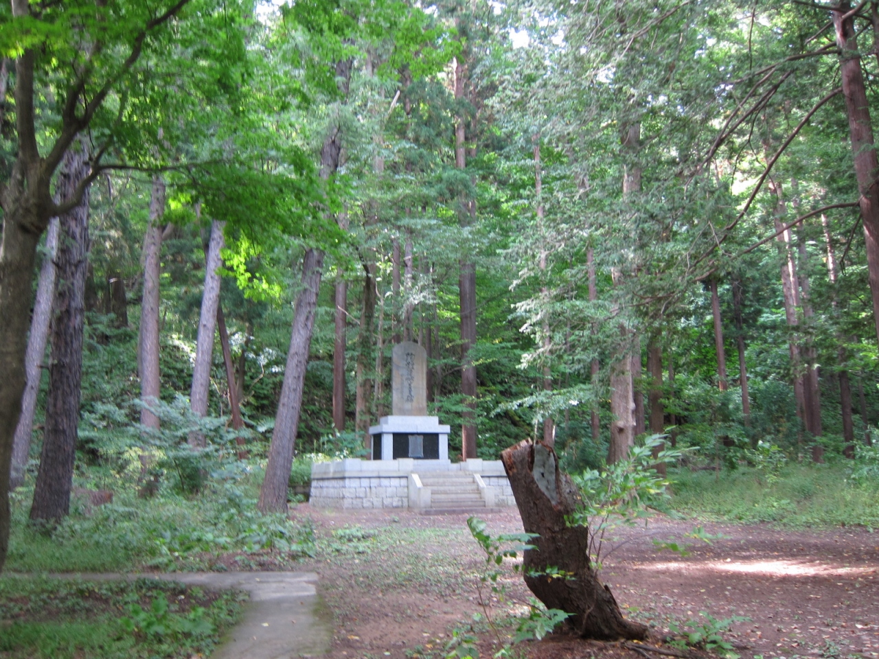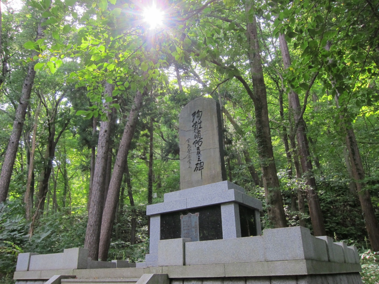 南1条通り(裏参道)が円山公園にさしかかるあたりに坂下野球場があります。その裏手、円山原始林を背後にひかえ、森の中にひっそりと建っています。方面委員、現在の民生委員の旧名称で、低所得者支援にあたった職の人達の功績をたたえ、慰霊するものとして、戦前の昭和11年に建てられたものです。その後、改修など受けているようで、碑はきれいな感じです。しかし、行った時には、周囲に雑草が生い茂って一部歩きにくいところもあり、手入れが不十分な感じでした。付近には鉄道員、逓信員(郵便局員)、消防員などを慰霊する碑もあります。