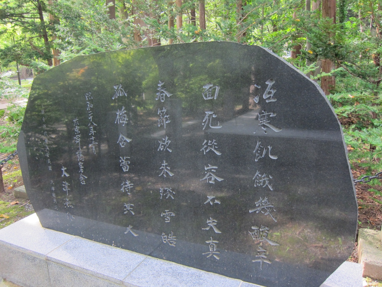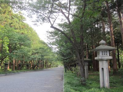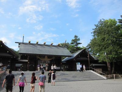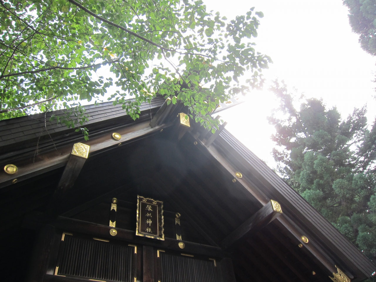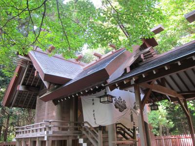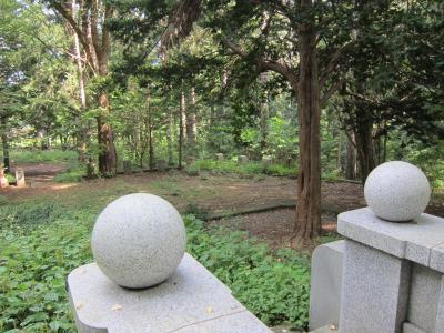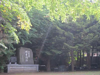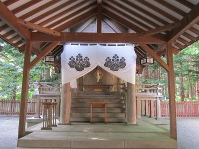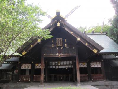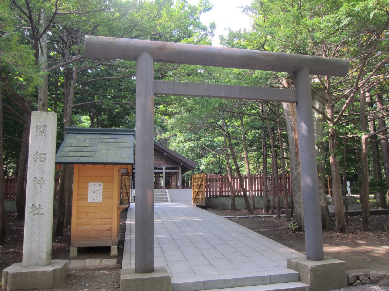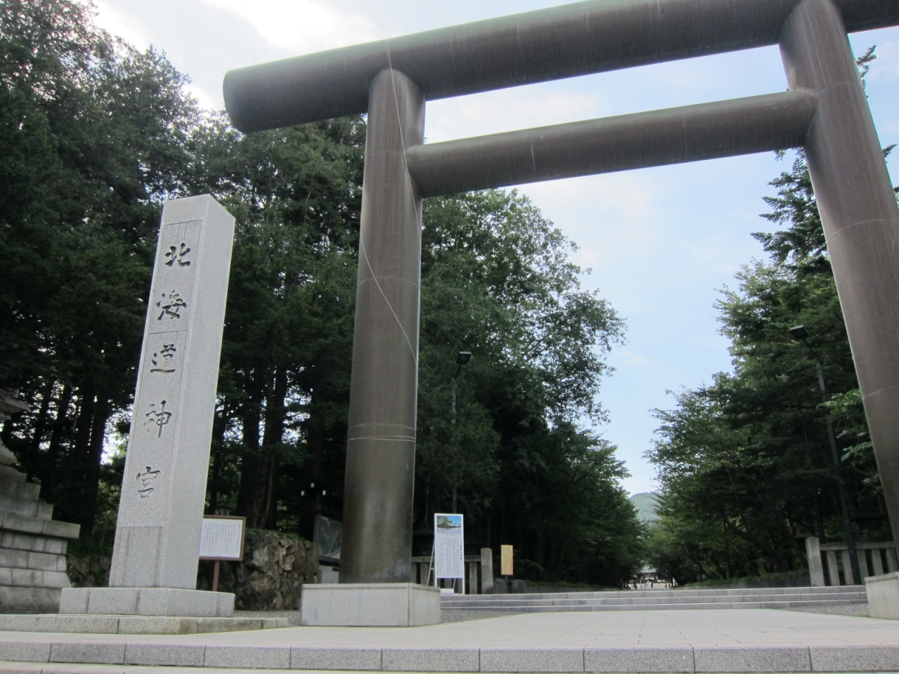 北海道神宮の境内社で、円山公園から境内に入る公園口の参道のところにあります。入口の由緒を見ると、御祭神のところに伊能忠敬や間宮林蔵というよく知る名前が載っています。武田信廣など室町時代に松前を支配した人物の名も載っていました。それぞれ北海道を開拓した名のある人達ばかりです。北海道開拓70年を記念して昭和13年(1938年)に建立され、三十六柱(後年、一柱を追加)の人物を祀ったそうです。神社はそれほど広い訳ではありませんが、柵で囲われたその空間は、整然と、そして静粛な感じで、気も引き締まる心地です。丹などの塗装のない白木の拝殿は北海道らしい造りの感じがしました。
