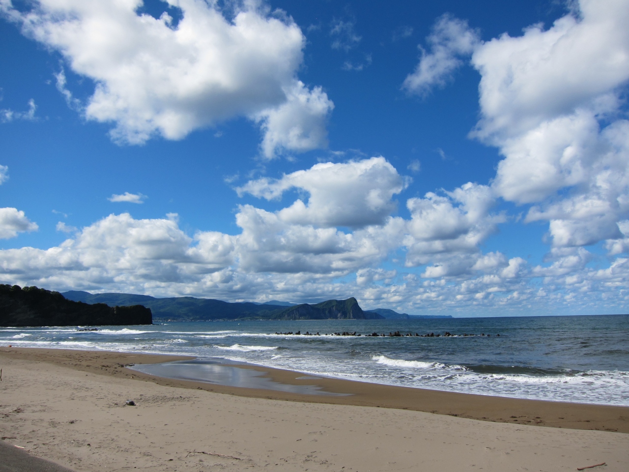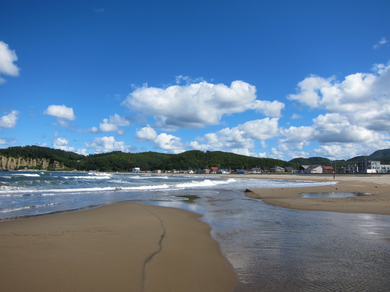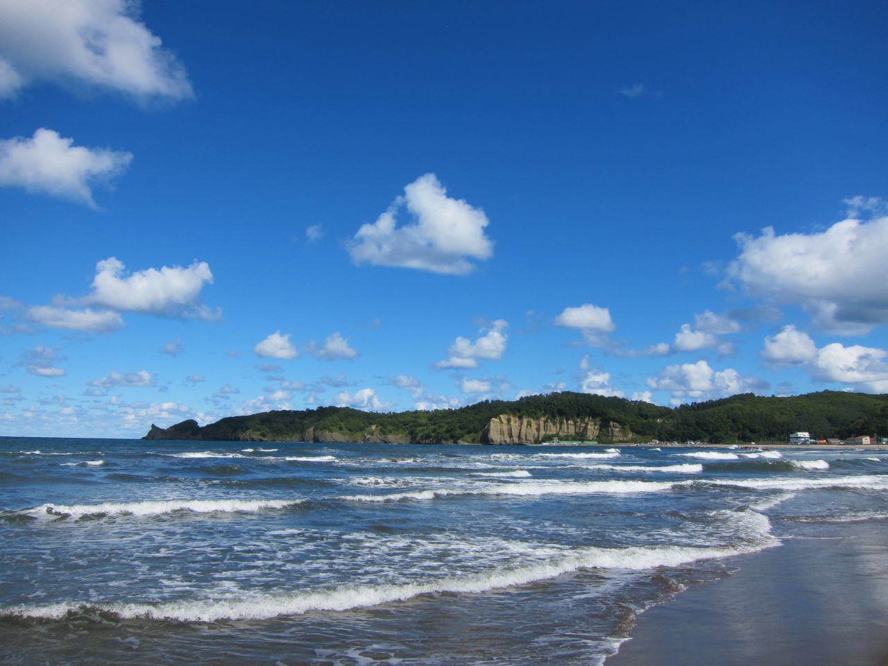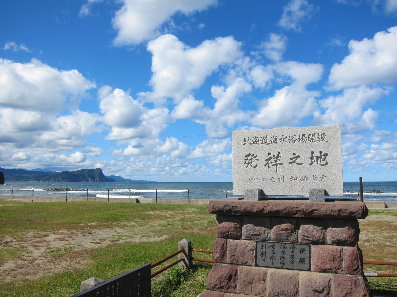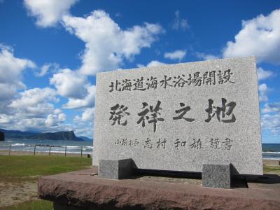 北海道海水浴場発祥の地。海岸の通り沿いに石碑が建っていますが、この景色を見ていると納得です。勿論、札幌や小樽に近かったせいもあるでしょうが、銭函や小樽のビーチと比べて、水がきれい。砂がきれい。そして景色がきれいです。さすが積丹に近いだけはあります。