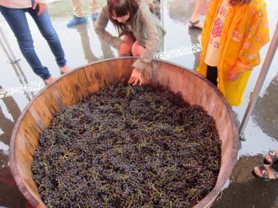 祭りではイベントも行われています。行った時は音楽が流れ、ぶどう踏みをやっていました。- 旅行時期
