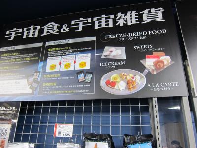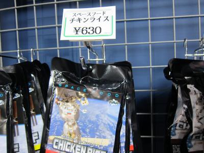 なお、ここよりも宇宙記念館側の道の駅無料休憩所の方がおもしろい物を売っていて、チキンライスや海老グラタン、アイスクリームの宇宙食がありました。ただ、一例に商品の袋の外からさわってみたところ、小さくかさかさした感じだったので(おいしいのかな?)、正直買うかどうか迷うところ。変わったお土産にはなると思います。ほか、子供向けの宇宙をテーマにした科学のおもちゃやJAXA銘のTシャツやキャップなどがありました。