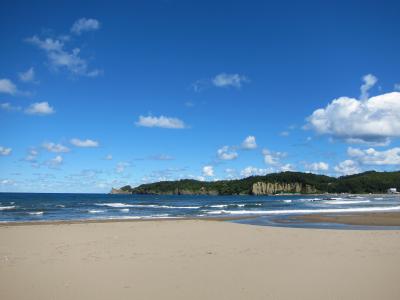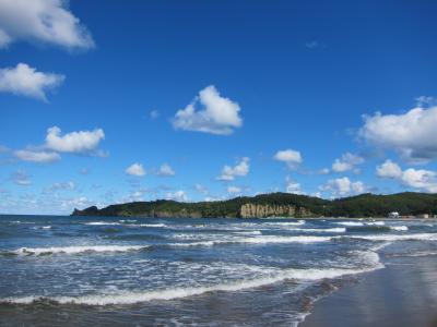 青空の下、白い海食崖をさらす積丹東岸、フゴッペ岬、忍路の岬が見え、とうに過ぎ去ってしまった夏を想像しながら、白く輝く砂浜を歩いていると、夏に来なかったことが悔やまれます。
