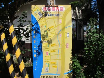 訪れたのは秋風吹く9月下旬。海の水は勿論のこと、海から吹き寄せる風もどことなく冷たさが混じりこんでいます。シーズンは7月から8月まで(小樽市のHPなどで要確認)。海岸に面した通りには海の家が並びますが、休日のよく晴れた日中だというのにその扉は固く閉じられたまま。砂浜にも遠くに子供たちが数人遊ぶのが見えましたが、他には人影もほとんどありませんでした。
