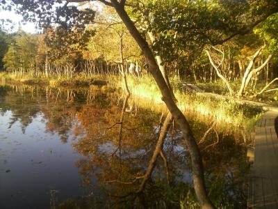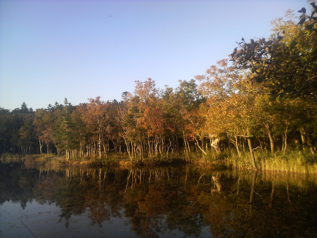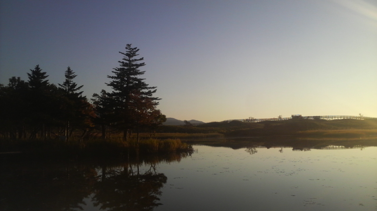 行ったときはまだ規制が無いころで、地上遊歩道も自由に立ち入れました。紅葉のころでしたが、夕陽を受けて赤や黄色に染まる湖畔の木々が素晴らしく、黄金色の光の中で湖面に映って輝いていました。また、遠景の知床連山も赤く輝き、鏡のように穏やかな湖面に映りこんでいました。雪をいただく連山が美しい新緑のころや、夏もいいと思いますが、紅葉のころは夕陽が感傷的な雰囲気と相まって抜群の情景を醸しだしていました。