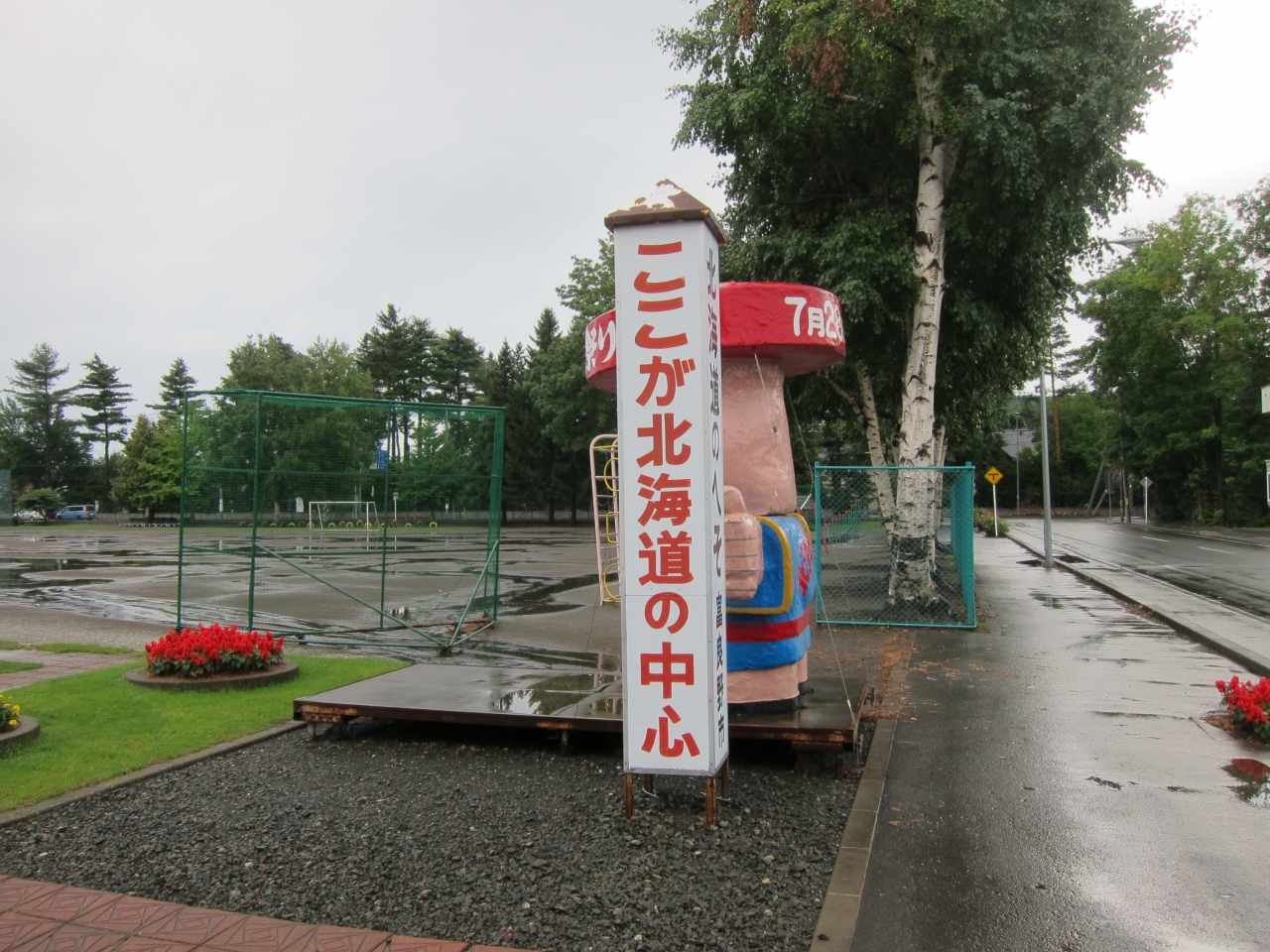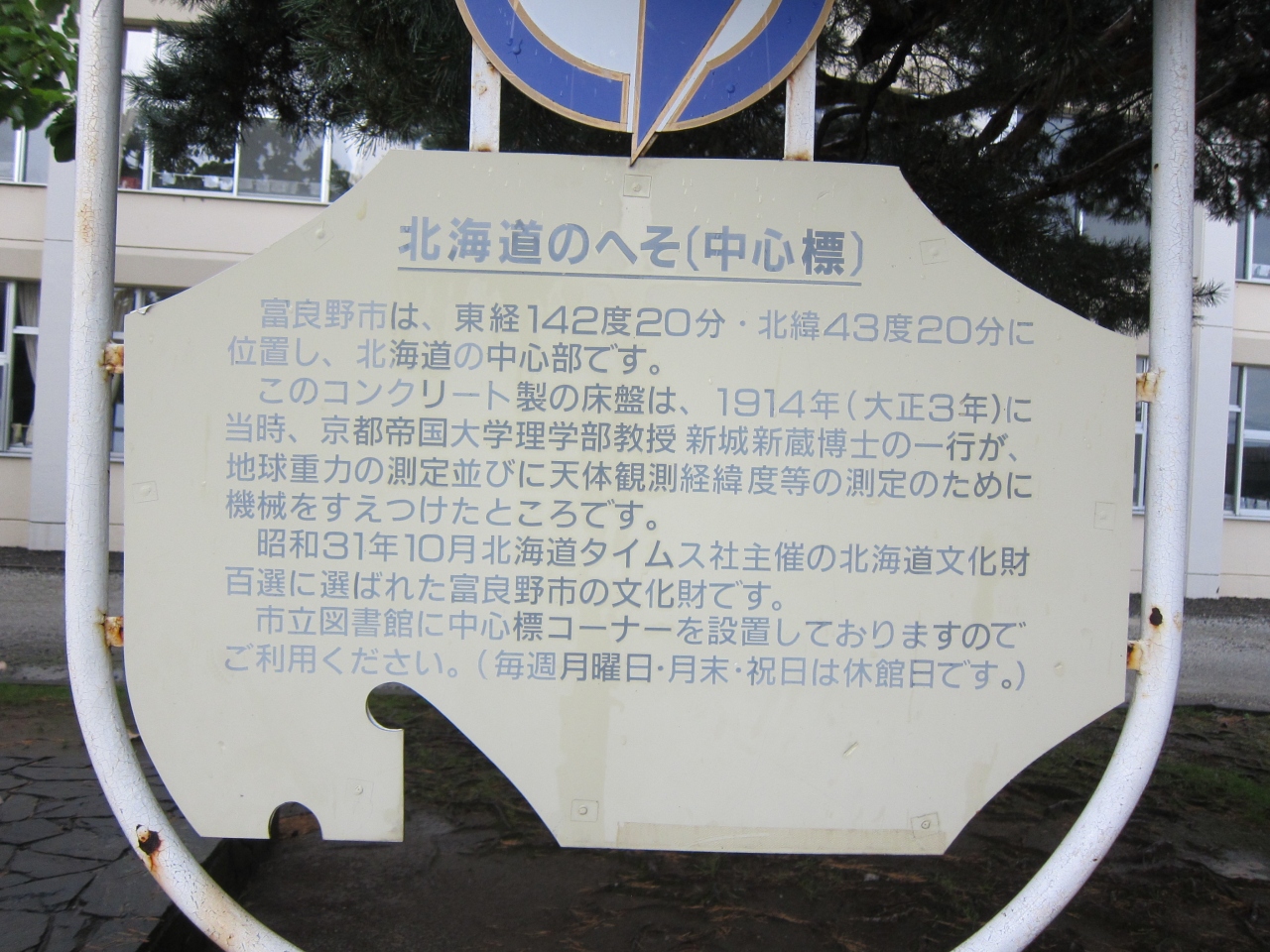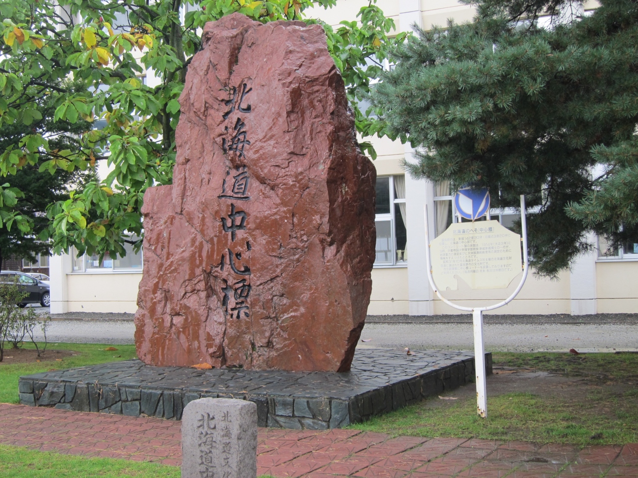 大きな岩です。下の台座が北海道の中心を決めるときに使用した機械の床盤だそうです。小学校の裏の市立図書館に中心標に関する資料があるようなので合わせて寄ってみるといいと思います。