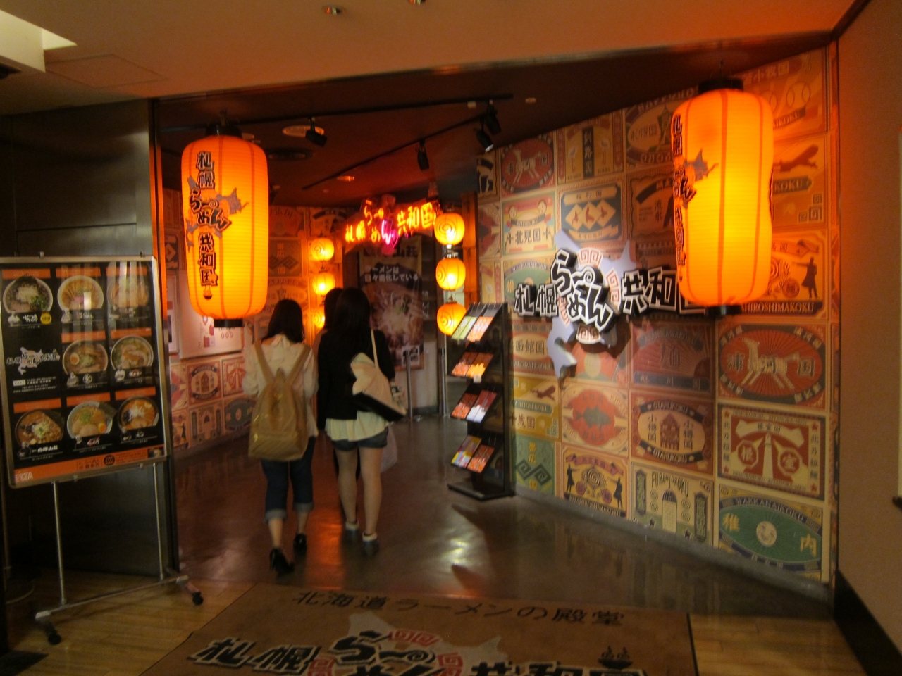 札幌駅を出て左(東)側。ESTAの10階に入っています(札幌駅からは地下から移動するとスムーズです)。アクセスがよくて手軽で便利です。北海道各地(中には道外も)の有名ラーメン店が数軒入っています。店は人気投票により入れ替えがありますが、梅光軒や白樺山荘はずっとありますし、千歳空港の北海道ラーメン道場などでも食べられる有力店なのであせって食べることもないかと思います。もっとも、その時一番気に入ったメニューを食べるのがいいと思います。店は昭和の札幌の雰囲気を漂わせる作り。好みの店を選んで入ります。各店はESTA内の他の店同様、Suica、Kitacaなどの電子マネーも使えました。