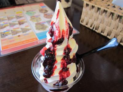 メロン、チョコバナナ、ハスカップなどのサンデー、ふらの牛乳、ラベンダーなどのソフトクリーム、カラフルなアイスクリーム、トッピングいろいろのクレープといったスイーツの店。富良野マルシェの駐車場側の入口のところにあります。サンデーは選ぶのに非常に迷った挙句、ハスカップを選択。穏やかな味わいのクリームに、甘さを引き締めるハスカップの実の載った至福の味。すいていれば店内のテーブルで賞味することができます。ほかにも季節がら、富良野バターとかぼちゃを使用した期間限定のハロウィンクレープなどがありました。寄ったときは順番に試してみようと思ってます。
