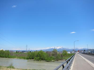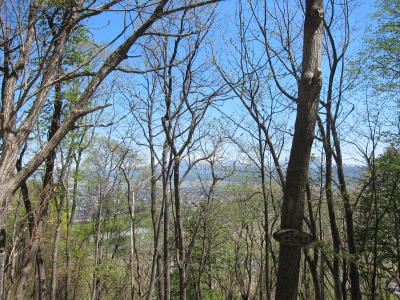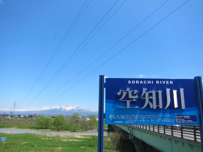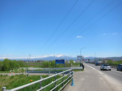 今回は桜の名所、朝日ヶ丘公園のなまこ山に登って、直下を流れる空知川を富良野盆地と共に眺めました。同時にここは、桜に十勝岳連峰を望む日本百景の一つでもあります。空知川は残念ながら木の間越しに見える程度。葉が茂ったら見えなくなりそうですが、それでも直下なので、盆地を滔々と流れる様子がなんとなく俯瞰できました。なお、富良野駅からの国道38号線でここに来る途中でも渡りましたが、雪解け水を集めて濁った水が通常の川幅を越えて勢いよく流れていました。