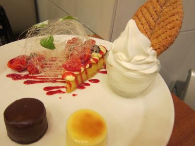 札幌駅直結のデパート、大丸の地下(食品売り場の階)に入っています。駅の地下通路から大丸に入ってすぐです。ケーキなどの洋菓子の売り場があり、その裏が食堂スペースとなっています。パフェやケーキセットがありますが、思ったより食堂の品数は多くはありません。また、メニューのクリームぜんざいやパフェ類の写真を見ていると、小休止によさそうな落ち着いたメニューといった印象です。ボリューム不足を振り払うかのように、デザートセットとクリームぜんざいを選んでみました。どちらも自慢のメニュー、人気のメニューとして店のおススメです。クリームは、濃厚というよりも、どちらかというと牛乳のすっきり感を引き立たせた味わい。ぜんざいに合うように和のマイルドな仕上がりとなっていました。