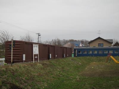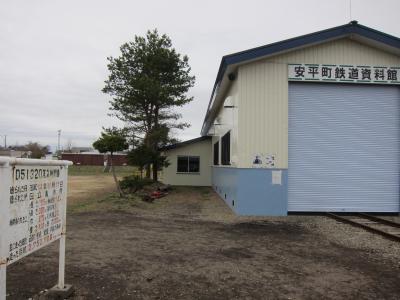 D51蒸気機関車が車庫に保存されています。車庫からわずかに線路が出ていて、不定期で庫外に出すそうです。とても不便な資料館で、5月~10月の第2・4金曜日の13時~15時の間だけ定例開館するとあります。その他、平日は8:30から17:30までの間、安平町教育委員会(0145-25-2083)へ連絡し、土休日は10時~14時で向かいの鹿公園管理事務所に連絡することで見学できるそうです。見学施設というより保存施設みたいな感じがします。ただ、それでもSLなどの鉄道ファンは見てみたいのでしょう。資料館の周囲は広場があり、線路に客車や貨車が並べられていて、子供が遊べる公園のようになっています。このような資料館ですが、かつての石炭輸送の一大拠点、追分駅の名残を今に伝える施設です。昔は追分駅構内を何条もの線路が引かれ、石炭を満載した貨物列車が停車していたようで、鉄道資料館のあたりも構内の一部だったようです。今ではかなり縮小され、室蘭本線と石勝線の線路が数本あるのみで、敷地の跡は住宅などに侵食されています。資料館は追分駅の裏手にあるのですが、駅から行くには北側に500mほど離れた跨線橋を迂回しなければなりません。