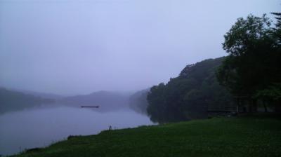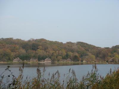 ポロトコタンは有料施設のため、フェンスで囲われています。道沿いからアイヌの住居を裏手から垣間見ることもできます。道は片側に湖面を眺めながら進むところもありますが、特に奥の方はポロト湿地になっているなど、ほとんど森の中を行くような感じです。ただ、道は休養林のコースとして整備されています。各所に案内板が立っているほか、途中、あずま屋やベンチのほか、奥の方にはキャンプ場、ビジターセンターなどがあります(西岸の道路から車でも行ける)。冬は結氷し、ワカサギ釣りが楽しめるようです。- 旅行時期