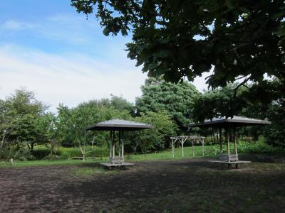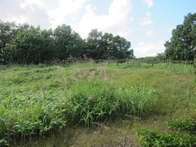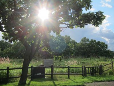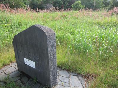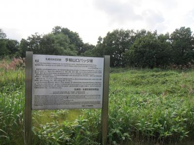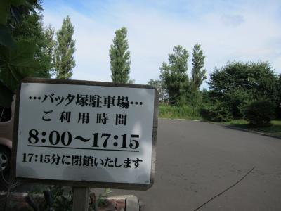 バッタ塚…。付近はおたるドリームビーチに近い砂丘林に囲まれ、人家も見当たりません。近くには林の中に墓石が点在する山口墓地があります。一回、夜に行きましたが(勿論、車で)、閉鎖されていました。敷地は山口緑地パークゴルフ場(東コース)に入っていく道のため18時で閉鎖されます。ただ、前述のような場所ですから、途中まででも十分雰囲気がありました。ましてや雨上がりのビームの光の先が霧立つ日でした。場所はとても分かりにくく、パークゴルフ場に入っていく道すがら、ゴルフ場のものとともに1、2ヶ所ほどバッタ塚の表示板がありました。ゴルフ場を入っていく道を進み、門を入ってすぐ分岐して更に500~600mも進んだ所にあります。下水処理場の近くです。生い茂る草地の土丘とともに、塚の因縁…説明の看板が立っていました。
