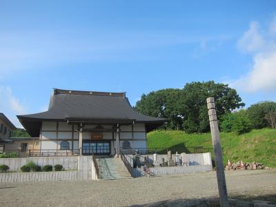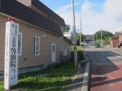 蝦夷三官寺のひとつ。しかし他の2つに比べ、普通の現代のお寺みたいな平凡な感じです。それもそのはず。現在のものは、移転により平成18年に建てられたばかりのもの。その前は隣の住吉神社や郵便局を挟んで数十m離れたところにありました。そちらにもまだ、国道336号線に面して等●院(●は「樹」のきへんがさんずいの字)と書かれた素朴な門柱が残っています。石碑や石像なども残っていて、そちらの方が、まだ古めかしい雰囲気がありますが、味わいのある茅葺の護摩堂も平成23年に新しい場所に移り、白木も新しい造りのものに変わってしまいました。当初から自然災害などにより移転を繰り返し、明治維新による廃寺のうきめに会うなど、昔からの雰囲気が失われてしまっているのが残念です。現在の場所からは、エンルム岬の岩山がよく見えました。