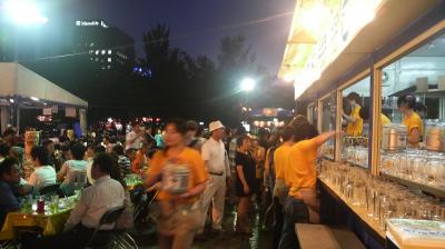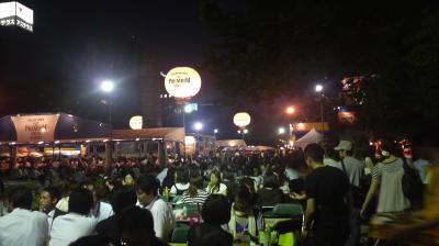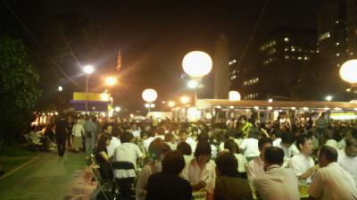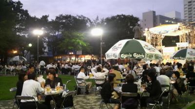 大通公園の5丁目から11丁目まで、ほとんどビアーガーデン。13,000席あまりもあるそうです。サッポロ、アサヒ、サントリー、キリンなど各社ブランドのビールが別々に、各丁目の区画ごとに出店しています。一番西の11丁目の区画は毎年いつもドイツ村です。それぞれ特色あるジョッキだったり、おつまみを販売していたりするので、ビールの味で選ぶか、おつまみで選ぶか、アクセスで選ぶかです(メニューや各店舗の区画の場所は大通ビアーガーデンのWebサイトに掲載されます)。人気の店舗は、会社が終業する17時前までに席取りをしておかないと座るのは難しいです(曜日や時期にもよりますが…)。座れなかった時などは近くの100円ショップで敷物を調達して、芝生に座って飲みました。どこもだいたい昼の12時から21時までやっています。時期は毎年7月の半ばから8月の半ばあたりまでです。昔は夜になると気温が下がり(北海道は本州と比べ、昼夜の気温差があるような感じ)、あまり外でビールという感じではありませんでしたが、最近はそうでもありません。混雑していてうるさいですが、おいしいビールを楽しめると思います。