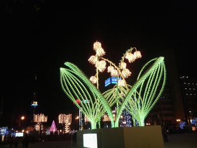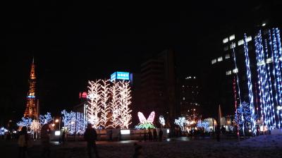 毎年、11月から12月にかけて初冬の大通公園ほかを彩ります。大通公園はテレビ塔のところから西8丁目まで。テレビ塔近くは、木やタワー、すずらんなどを模したものなど華やかなものが多いですが、西の方も青い光で木を照らしたり、全体を照明したりしていて落ち着いた雰囲気のものがあります。札幌はだいたい10月終わり~11月ごろが初雪です。雪が積もって白い雪面に光を反射する光景がとてもきれいです。なお、ミュンヘンクリスマス市が同時期に開催されるので、温かいグリューワインを片手に大通を散策してみるのもよいと思います。