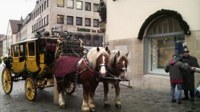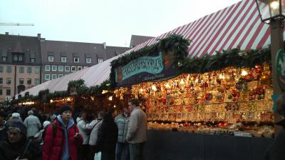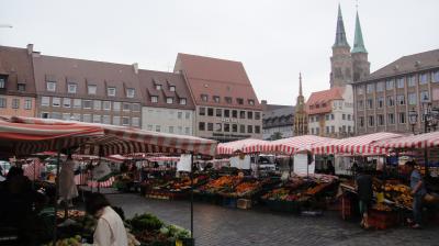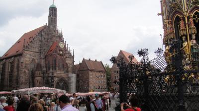 ニュルンベルクの駅を出て、地下道をくぐり、ケーニヒ通りをまっすぐ1kmほど行ったところにあります。正面にフラウエン教会がそびえ、広場には果物などを売る屋台が並びます。また、周囲にはカフェやレープクーヘンの店、各種おみやげ物を売る店などが点在しています。近くにはカイザーブルクなど観光名所が多く、観光客でいっぱい。周囲を巡る観光馬車などもあります。ただこの広場が一番賑わうのはクリスマスマーケットの時だと思います。夏よりもまして屋台がぎっしり。オーナメントやグリューワイン、ブルストなどが売られていました。